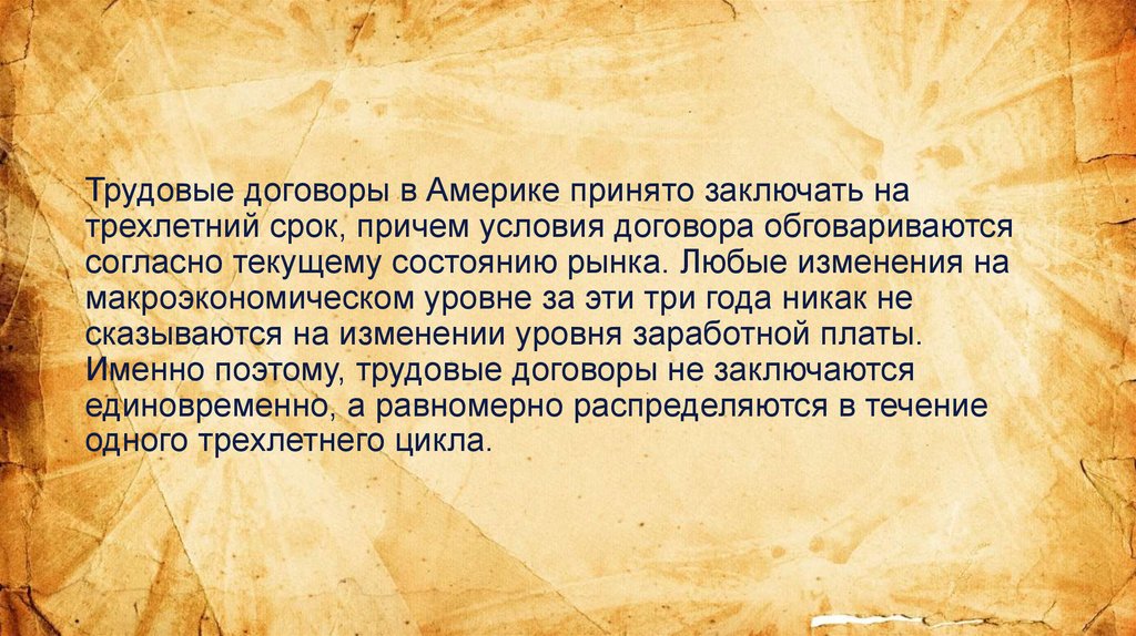 Трудовые договоры в Америке принято заключать натрехлетний срок, причем условия договора обговариваются