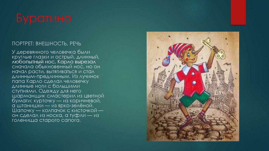 БуратиноПОРТРЕТ: ВНЕШНОСТЬ, РЕЧЬ