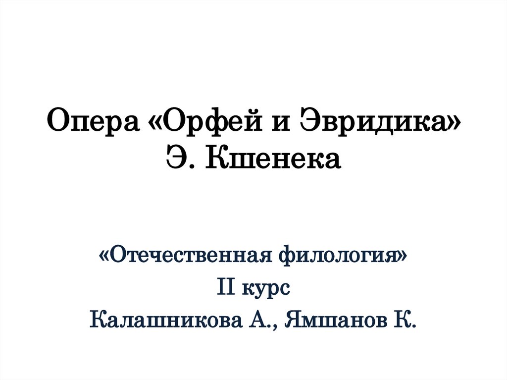Опера «Орфей и Эвридика» Э. Кшенека
