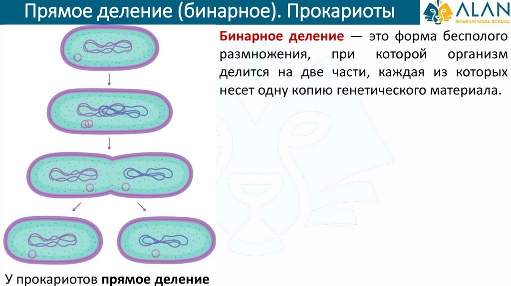 Прямое деление (бинарное). ПрокариотыБинарное деление — это форма бесполого