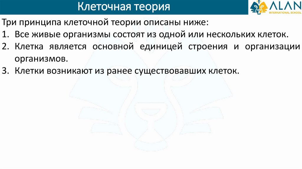Клеточная теорияТри принципа клеточной теории описаны ниже: