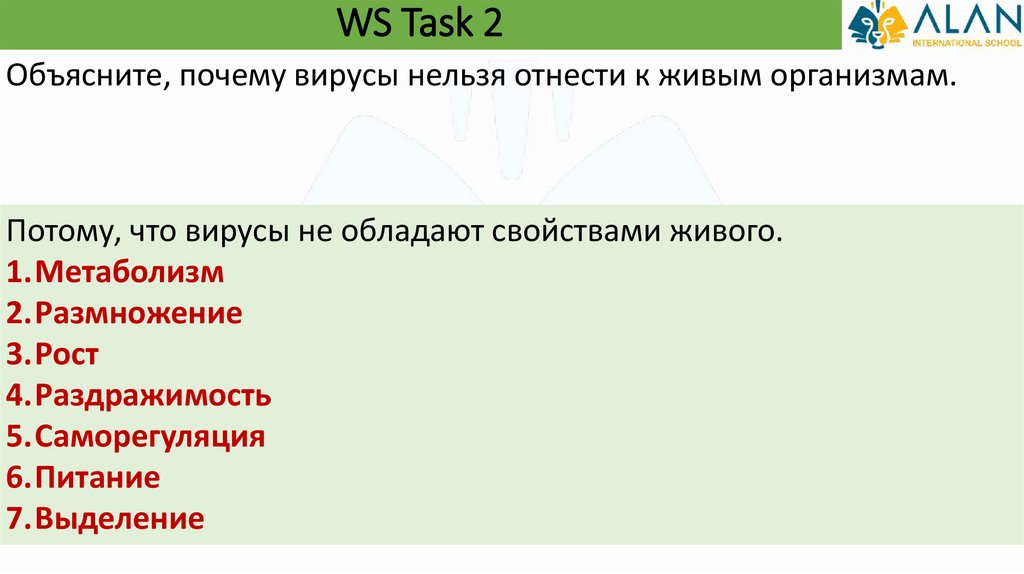 WS Task 2Объясните, почему вирусы нельзя отнести к живым организмам.