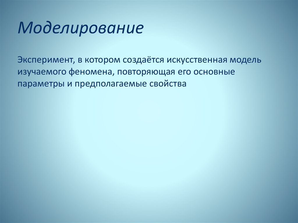 МоделированиеЭксперимент, в котором создаётся искусственная модель
