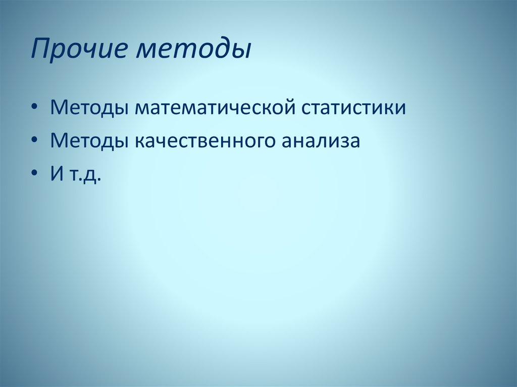 Прочие методы• Методы математической статистики