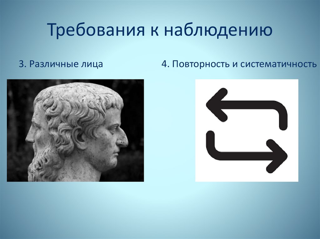Требования к наблюдению3. Различные лица