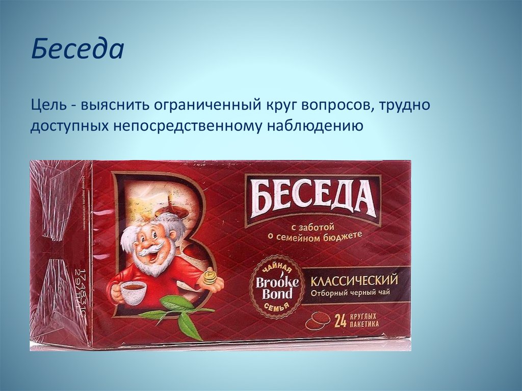 БеседаЦель - выяснить ограниченный круг вопросов, трудно