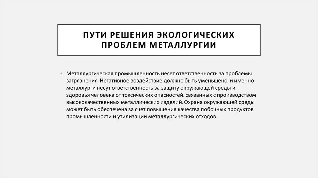 ПУТИ РЕШЕНИЯ ЭКОЛОГИЧЕСКИХПРОБЛЕМ МЕТАЛЛУРГИИ