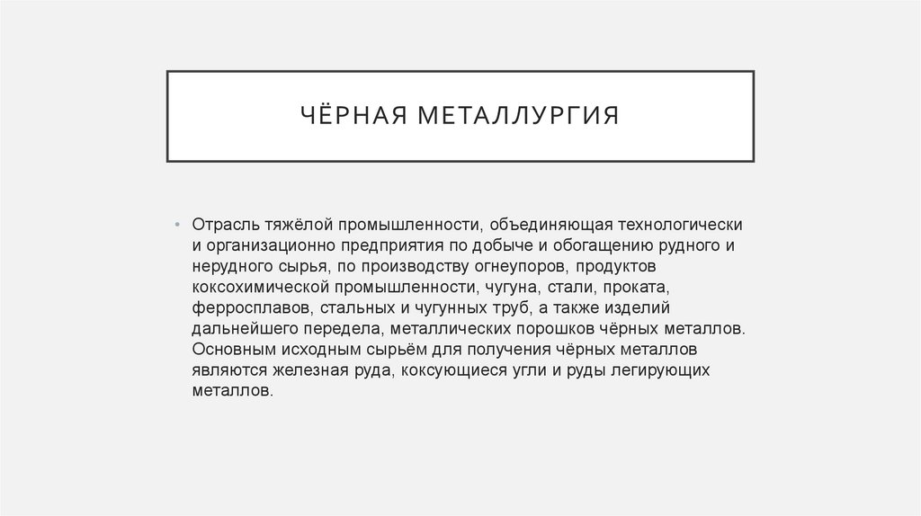 ЧЁРНАЯ МЕТАЛЛУРГИЯ• Отрасль тяжёлой промышленности, объединяющая технологически