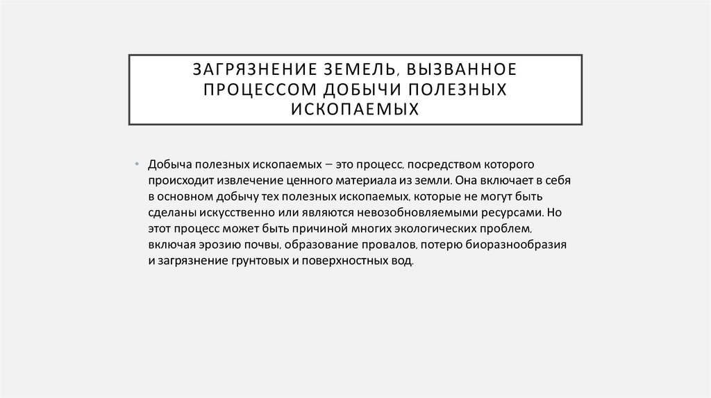 ЗАГРЯЗНЕНИЕ ЗЕМЕЛЬ, ВЫЗВАННОЕПРОЦЕССОМ ДОБЫЧИ ПОЛЕЗНЫХ