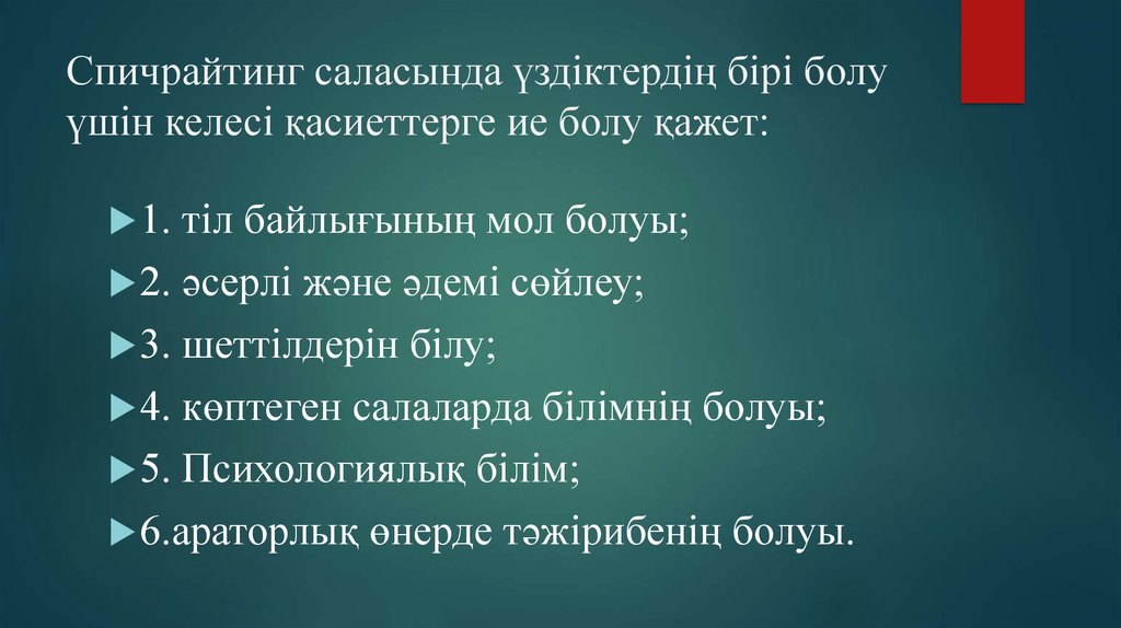 8. Спичрайтинг саласында үздіктердің бірі болу үшін келесі қасиеттерге ие болу қажет: