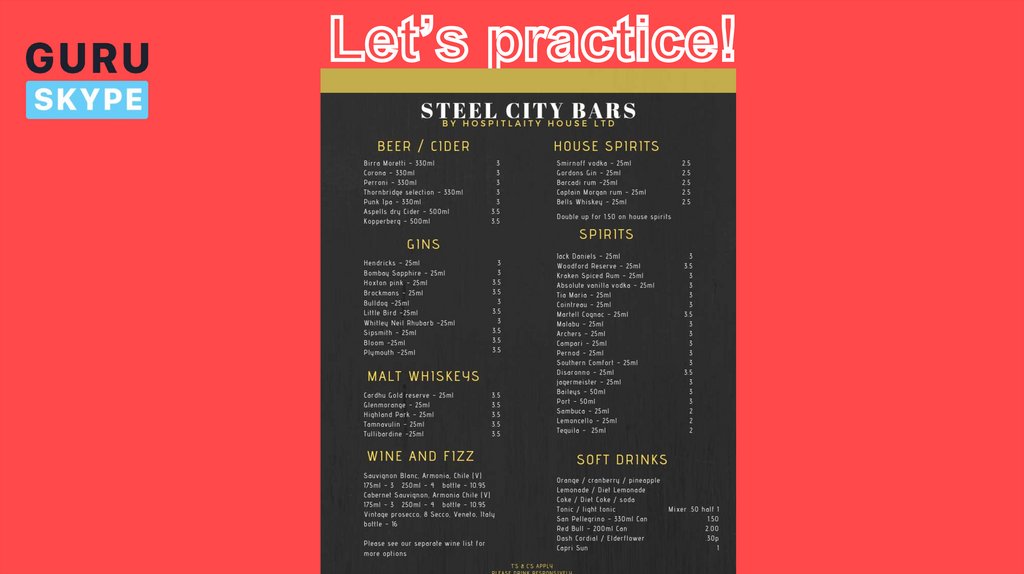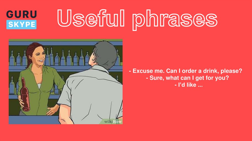 - Excuse me. Can I order a drink, please?- Sure, what can I get for you?
