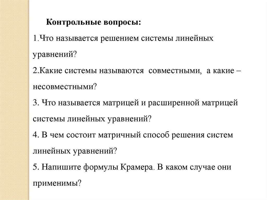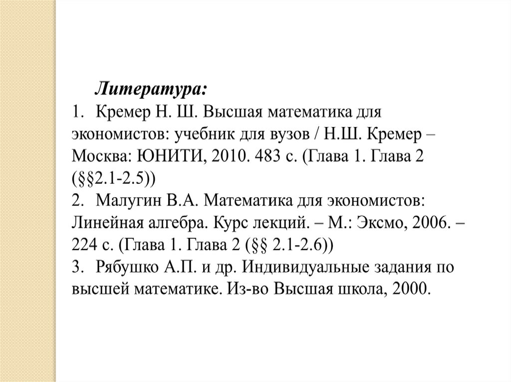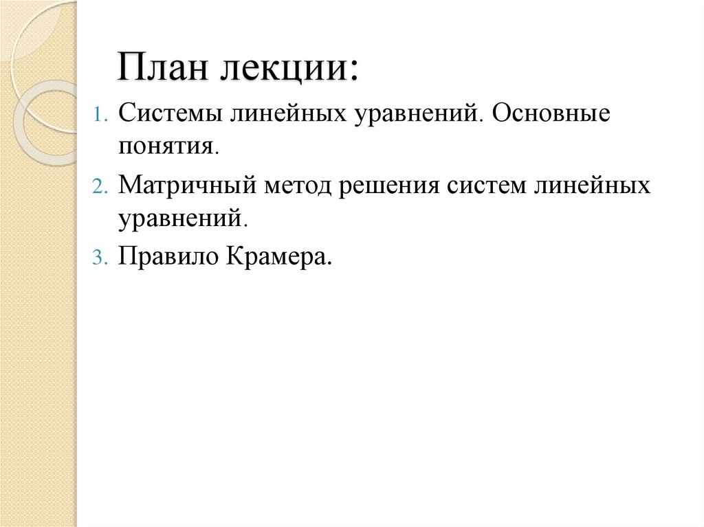 План лекции:1. Системы линейных уравнений. Основные
