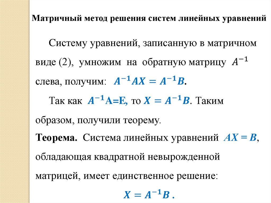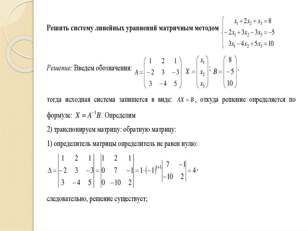 2. Матричный метод решения систем линейных