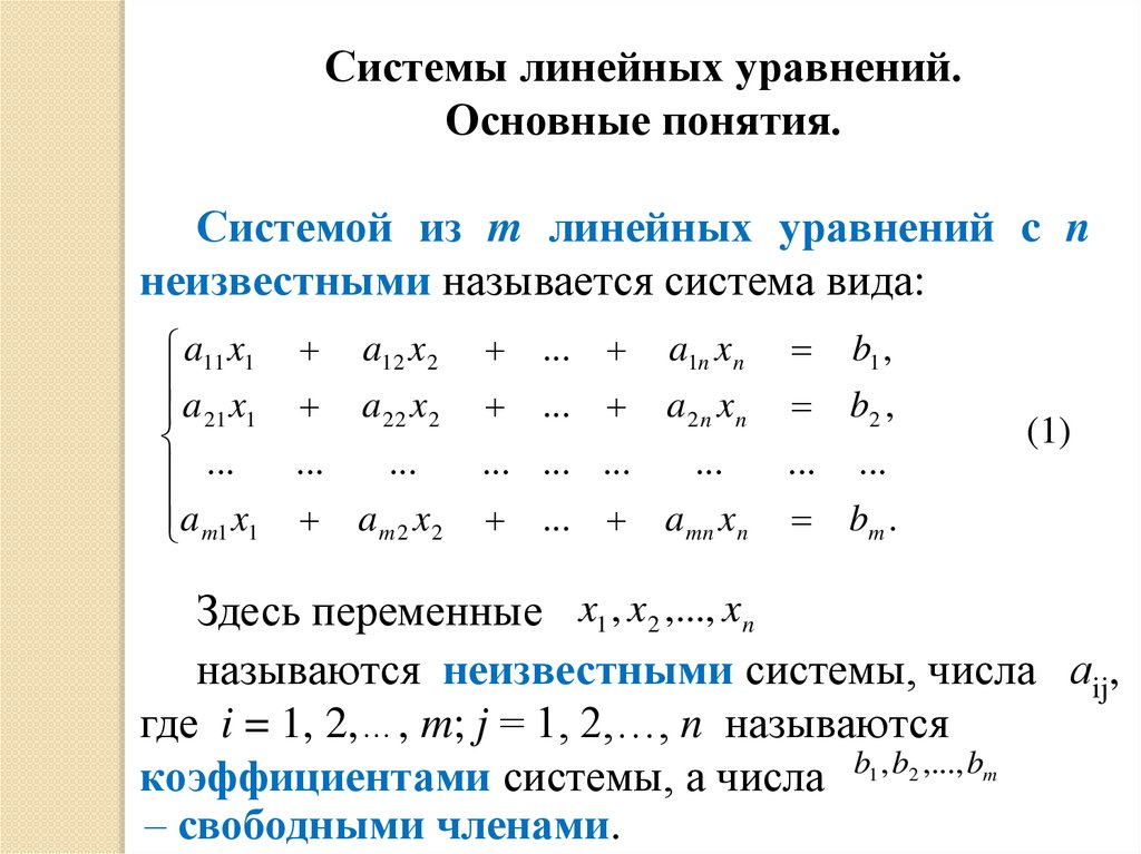 Системы линейных уравнений.Основные понятия.