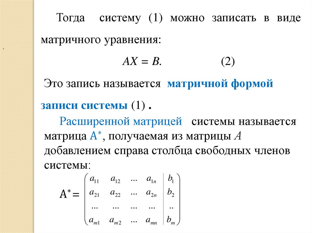 Системой из m линейных уравнений c n