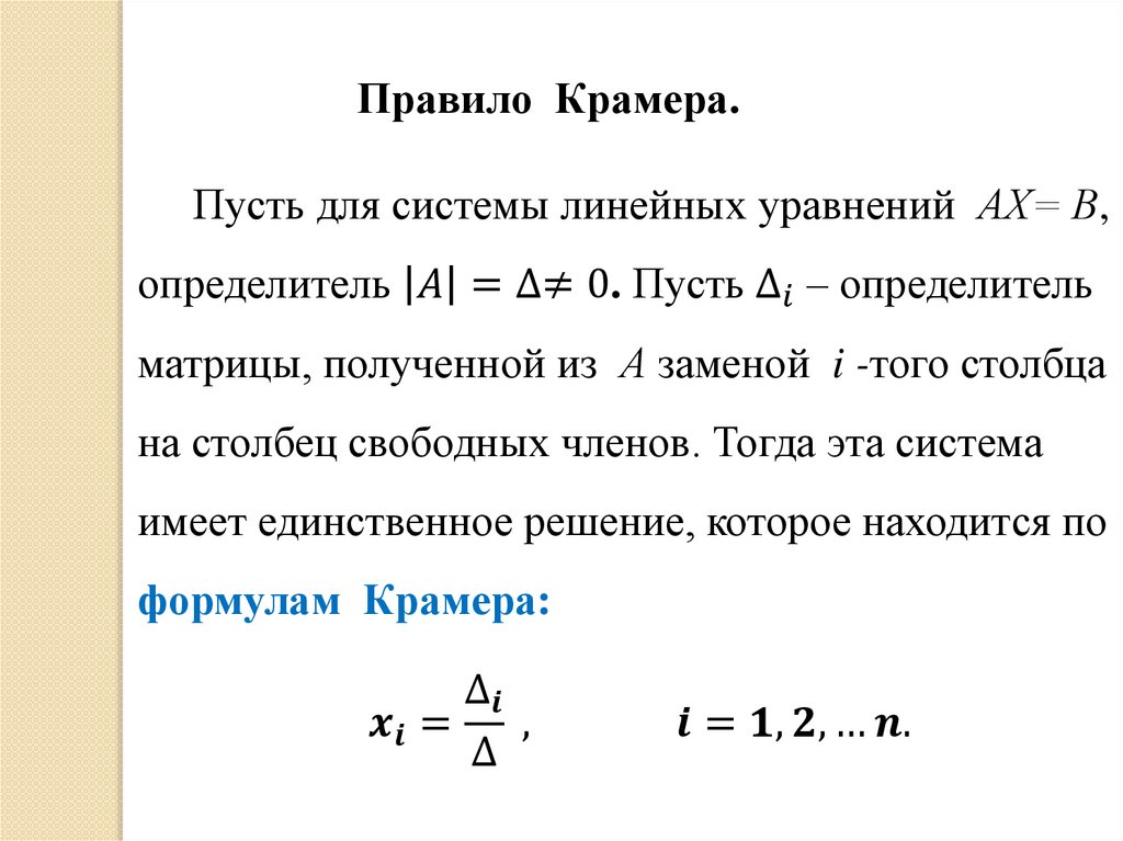 3. Правило Крамера.