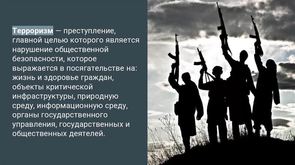 Терроризм — преступление,главной целью которого является
