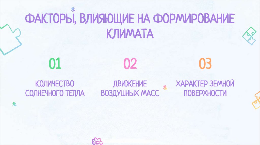 ФАКТОРЫ, ВЛИЯЮЩИЕ НА ФОРМИРОВАНИЕКЛИМАТА