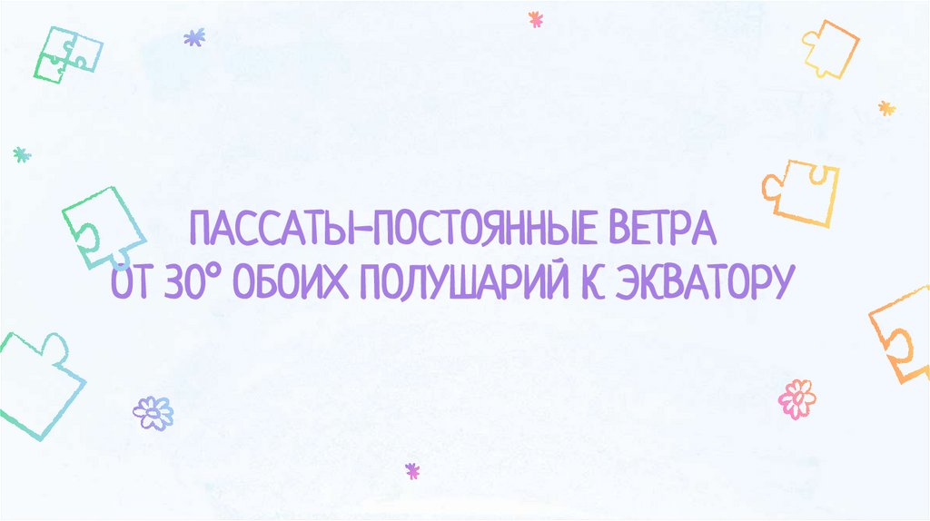 ПАССАТЫ-ПОСТОЯННЫЕ ВЕТРАОТ 30° ОБОИХ ПОЛУШАРИЙ К ЭКВАТОРУ