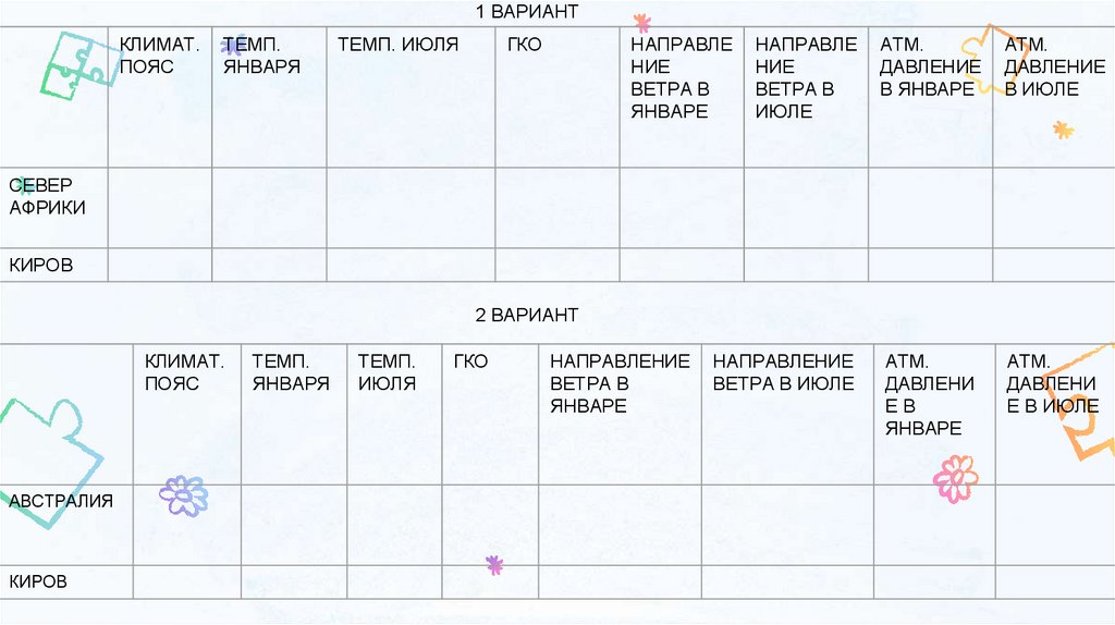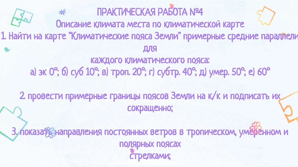 1. Найти на карте "Климатические пояса Земли" примерные средние параллели