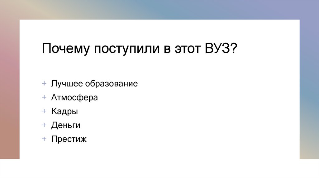 Почему поступили в этот ВУЗ?+ Лучшее образование