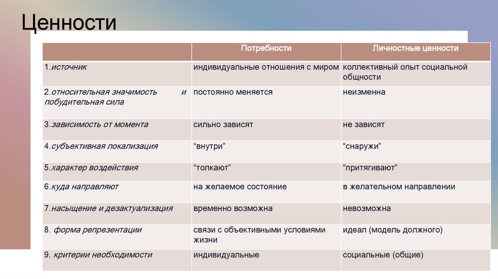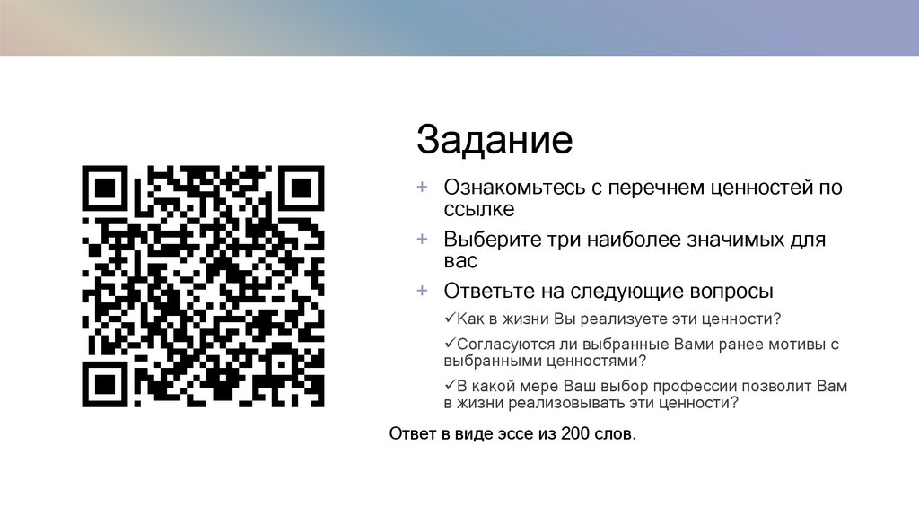 Задание+ Ознакомьтесь с перечнем ценностей по