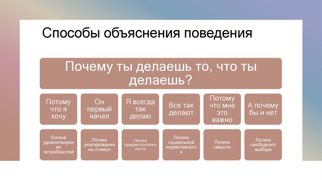 Способы объяснения поведенияПочему ты делаешь то, что ты
