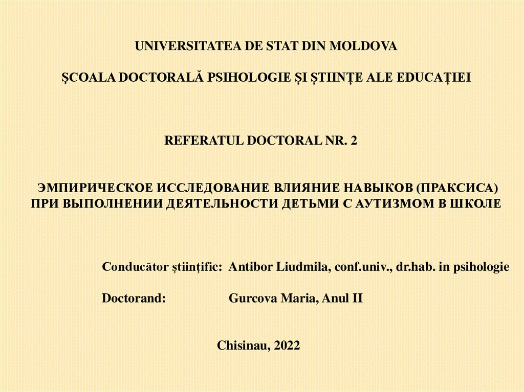 Conducător ştiinţific: Antibor Liudmila, conf.univ., dr.hab. in psihologie