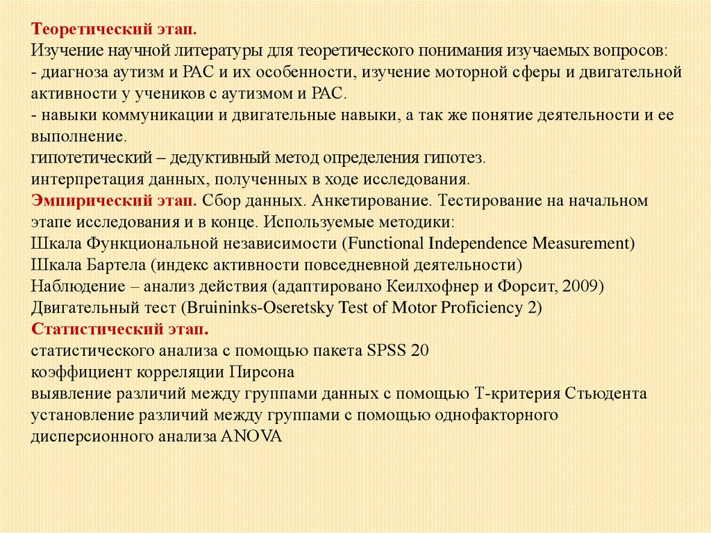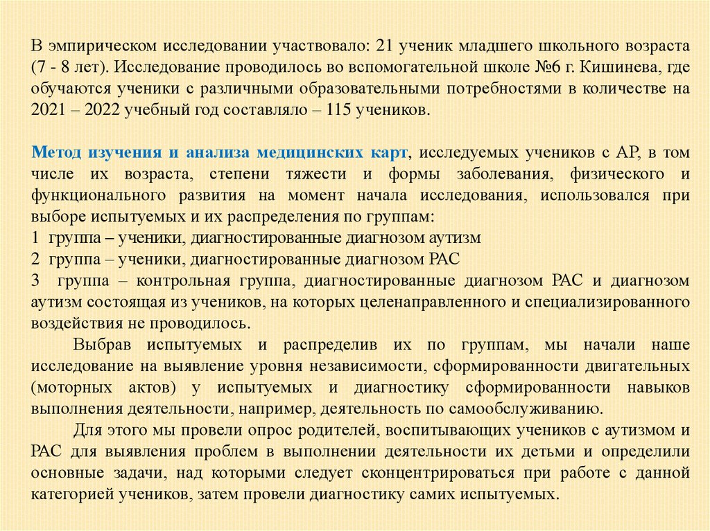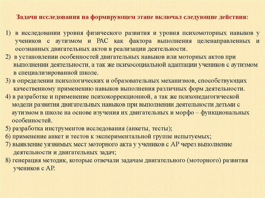 Эмпирическое исследование влияние навыков (праксиса) при выполнении деятельности детьми с аутизмом в школе