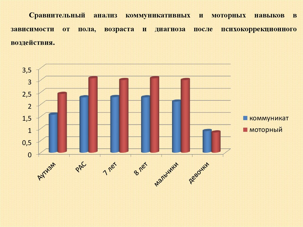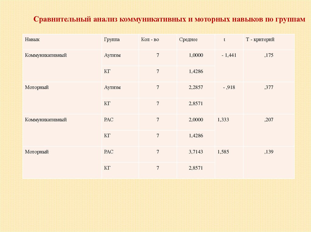 Сравнительный анализ коммуникативных и моторных навыков по группамНавык