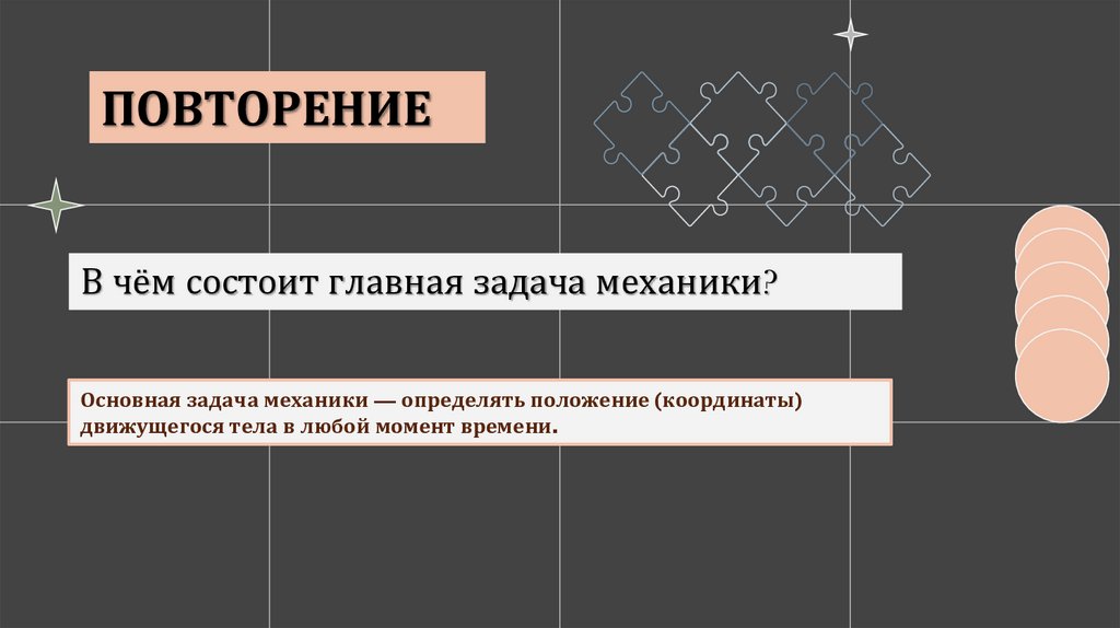 ПОВТОРЕНИЕВ чём состоит главная задача механики?