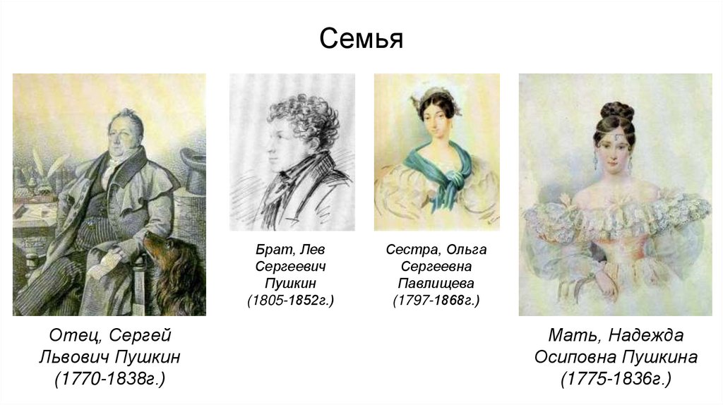 Пушкина. Семья (кроме Александра, были еще дети Ольга и Лев)