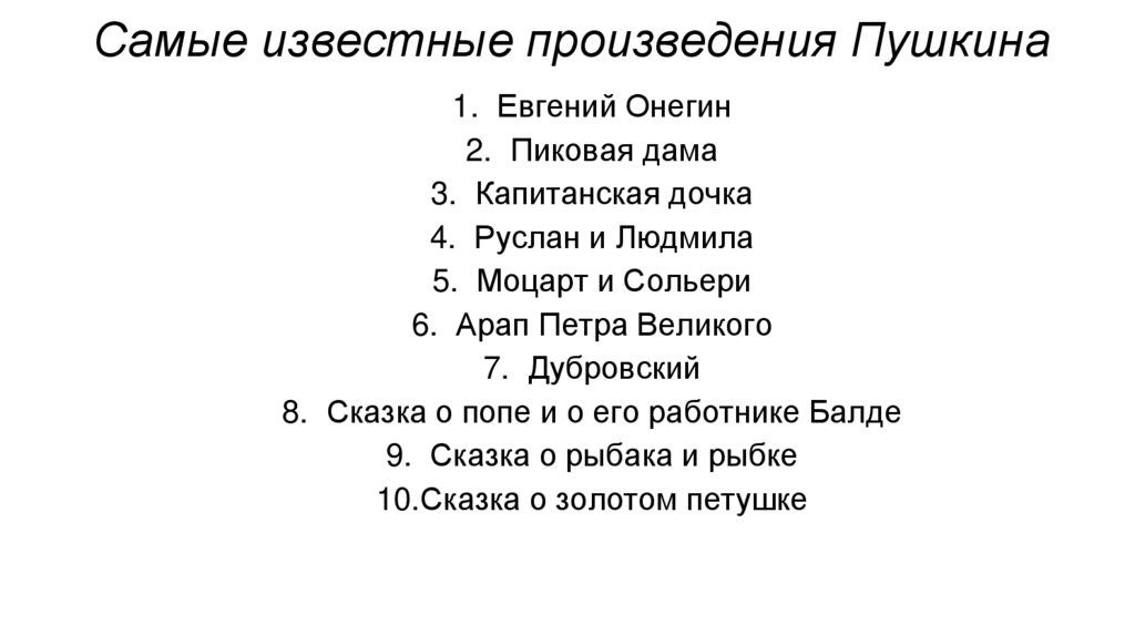 Самые известные произведения Пушкина1. Евгений Онегин