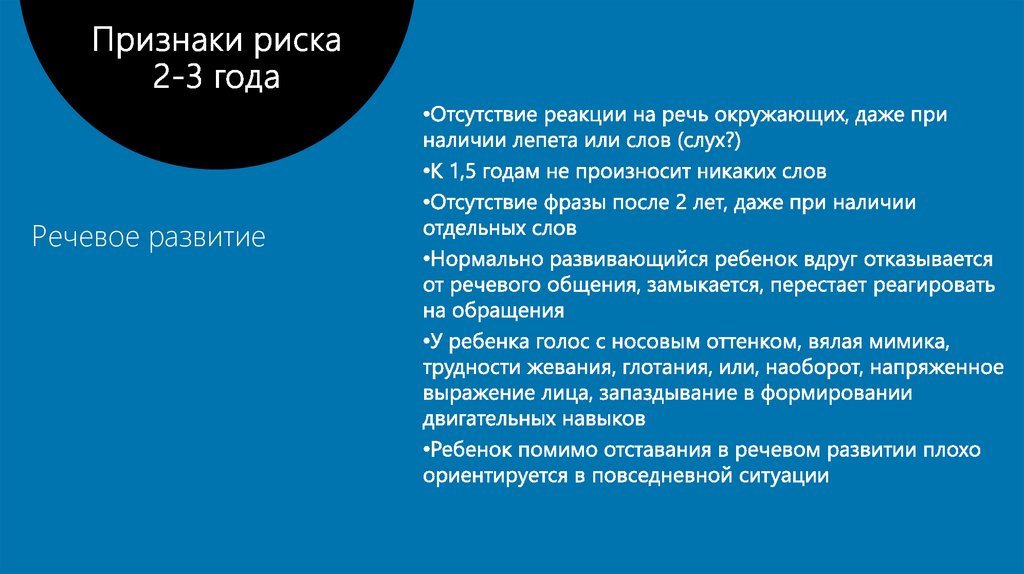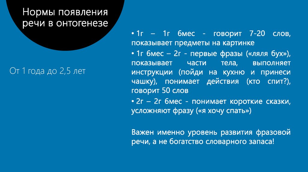•Понимание речи (уровень), активная речь (что наблюдается в процессе