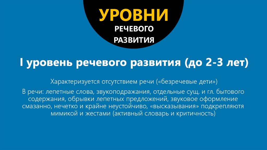 В речи: лепетные слова, звукоподражания, отдельные сущ. и гл. бытового