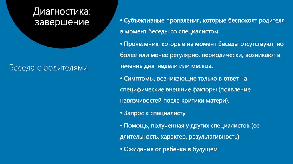 РЕЗУЛЬТАТ• Указание первичного запроса родителя, зачем пришли на диагностику