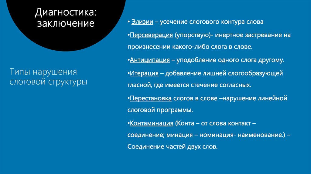 • Речевые (нозологические) симптомы: каждый симптом соотносится с уровнем