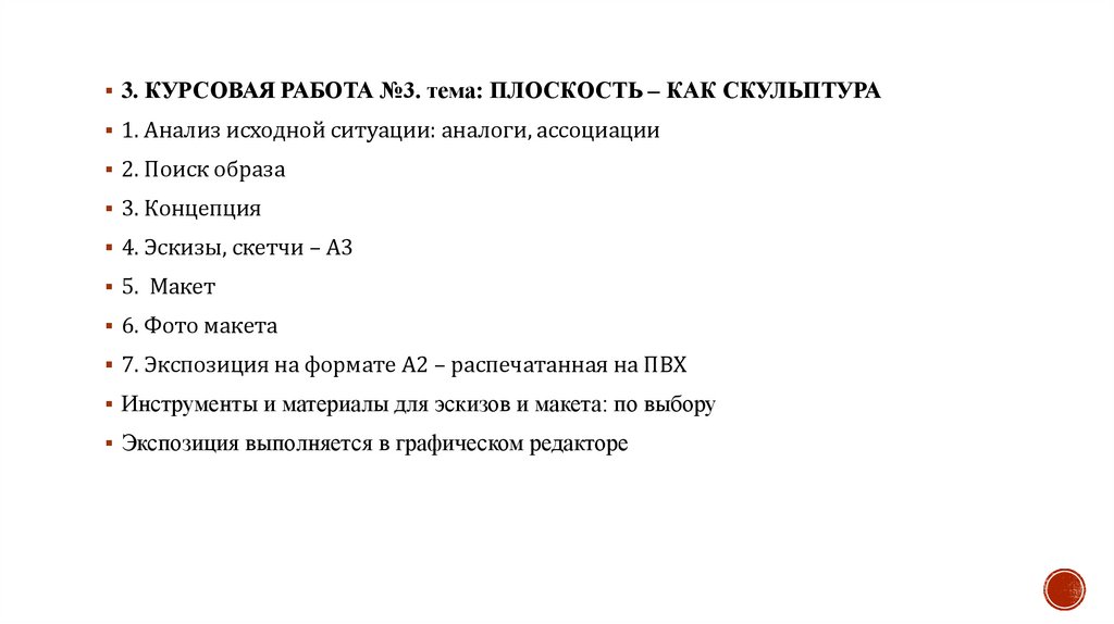 3. КУРСОВАЯ РАБОТА №3. тема: ПЛОСКОСТЬ – КАК СКУЛЬПТУРА1. Анализ исходной ситуации: аналоги, ассоциации