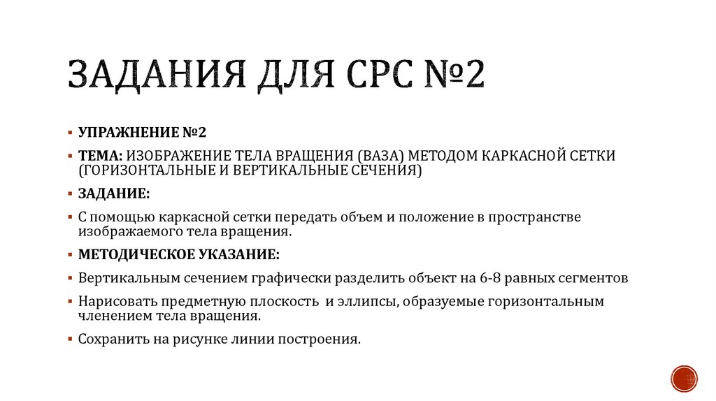 УПРАЖНЕНИЕ №2ТЕМА: ИЗОБРАЖЕНИЕ ТЕЛА ВРАЩЕНИЯ (ВАЗА) МЕТОДОМ КАРКАСНОЙ СЕТКИ
