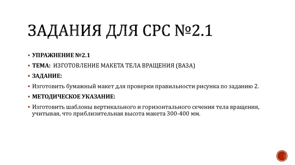 УПРАЖНЕНИЕ №2.1ТЕМА: ИЗГОТОВЛЕНИЕ МАКЕТА ТЕЛА ВРАЩЕНИЯ (ВАЗА)