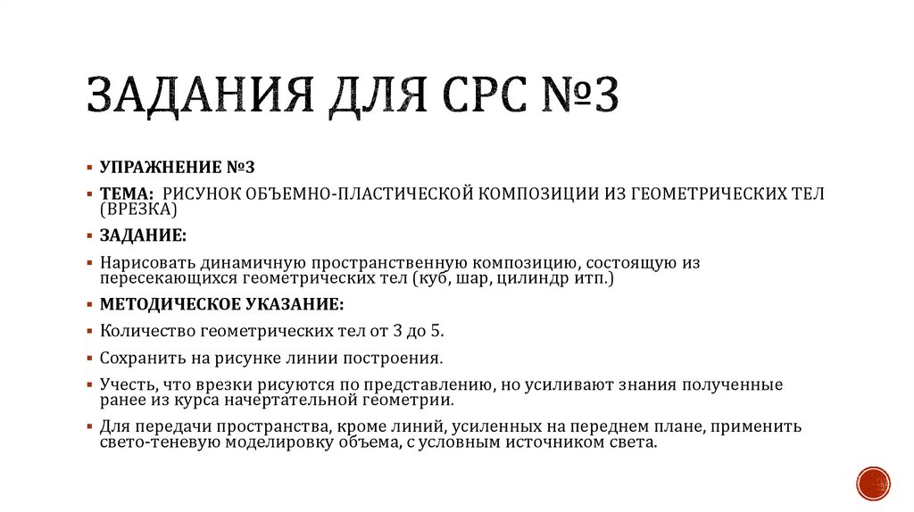 УПРАЖНЕНИЕ №3ТЕМА: РИСУНОК ОБЪЕМНО-ПЛАСТИЧЕСКОЙ КОМПОЗИЦИИ ИЗ ГЕОМЕТРИЧЕСКИХ ТЕЛ