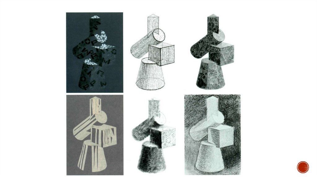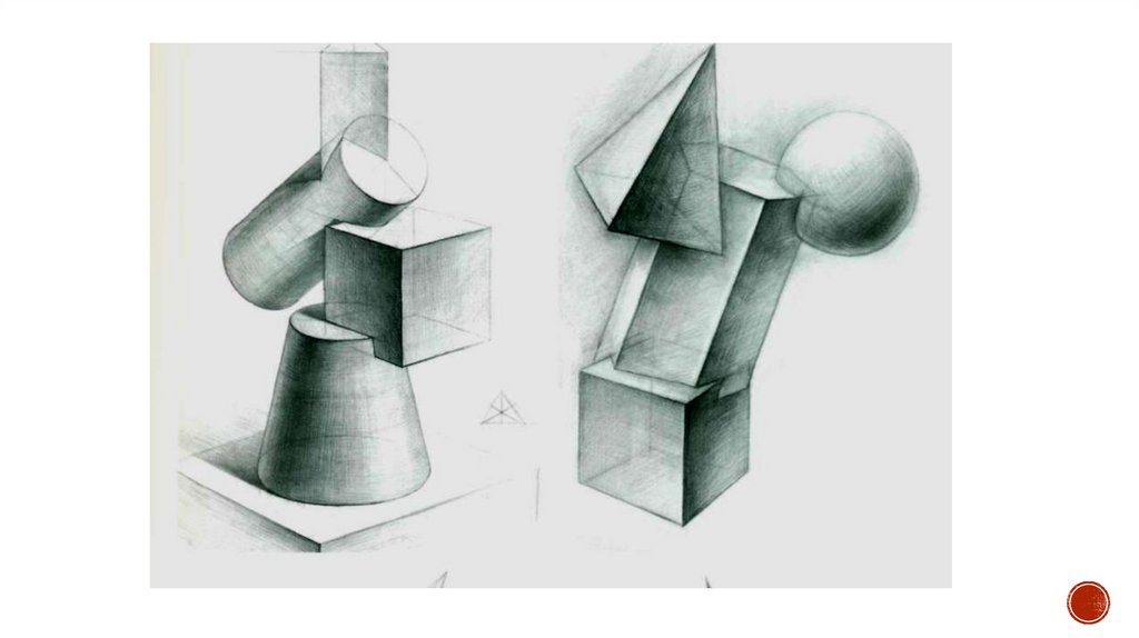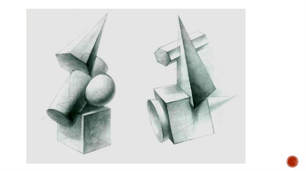 УПРАЖНЕНИЕ №4ТЕМА: РИСУНОК ОБЪЕМНО-ПЛАСТИЧЕСКОЙ КОМПОЗИЦИИ ИЗ ГЕОМЕТРИЧЕСКИХ