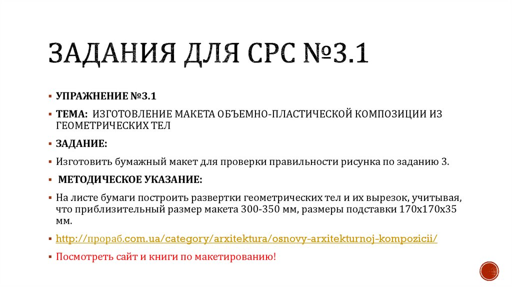 УПРАЖНЕНИЕ №3.1ТЕМА: ИЗГОТОВЛЕНИЕ МАКЕТА ОБЪЕМНО-ПЛАСТИЧЕСКОЙ КОМПОЗИЦИИ ИЗ