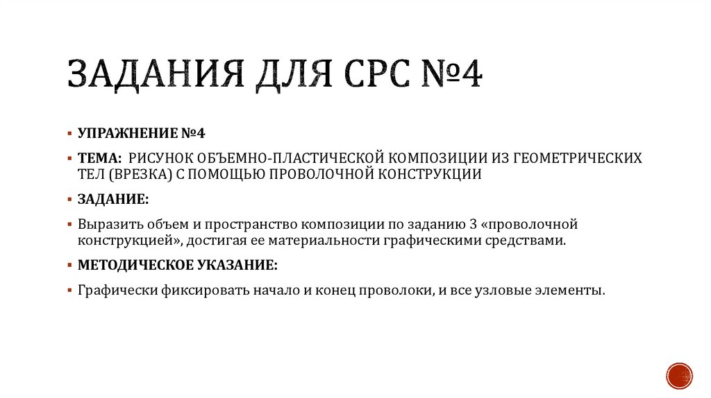 Выразить объем и пространство композиции по заданию 3 «проволочной