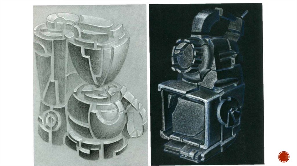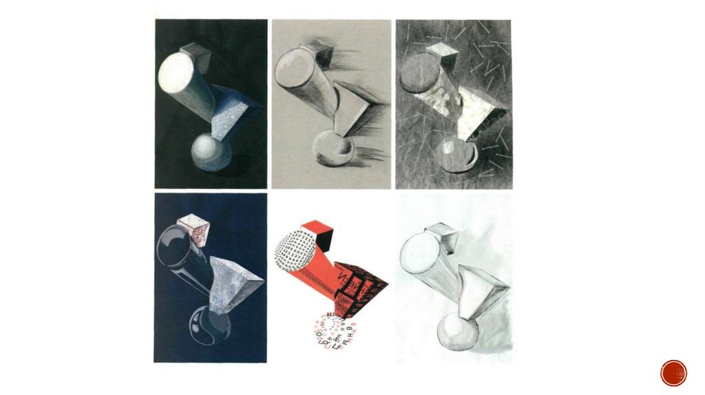 свето-теневую моделировку объема, с условным источником света.