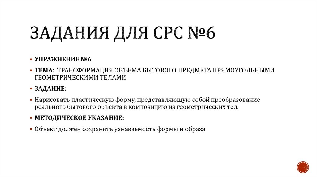 УПРАЖНЕНИЕ №6ТЕМА: ТРАНСФОРМАЦИЯ ОБЪЕМА БЫТОВОГО ПРЕДМЕТА ПРЯМОУГОЛЬНЫМИ