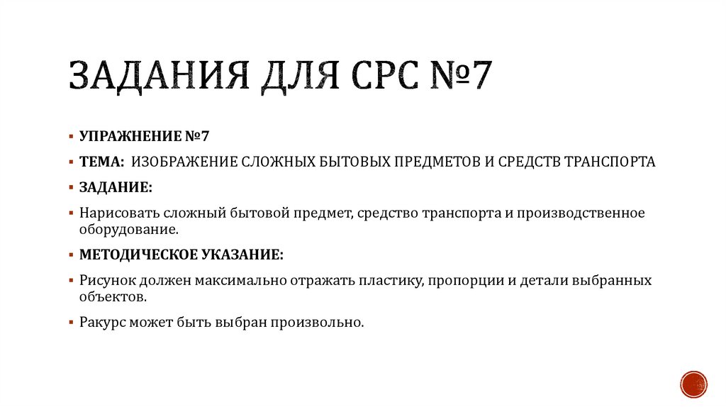 УПРАЖНЕНИЕ №7ТЕМА: ИЗОБРАЖЕНИЕ СЛОЖНЫХ БЫТОВЫХ ПРЕДМЕТОВ И СРЕДСТВ ТРАНСПОРТА