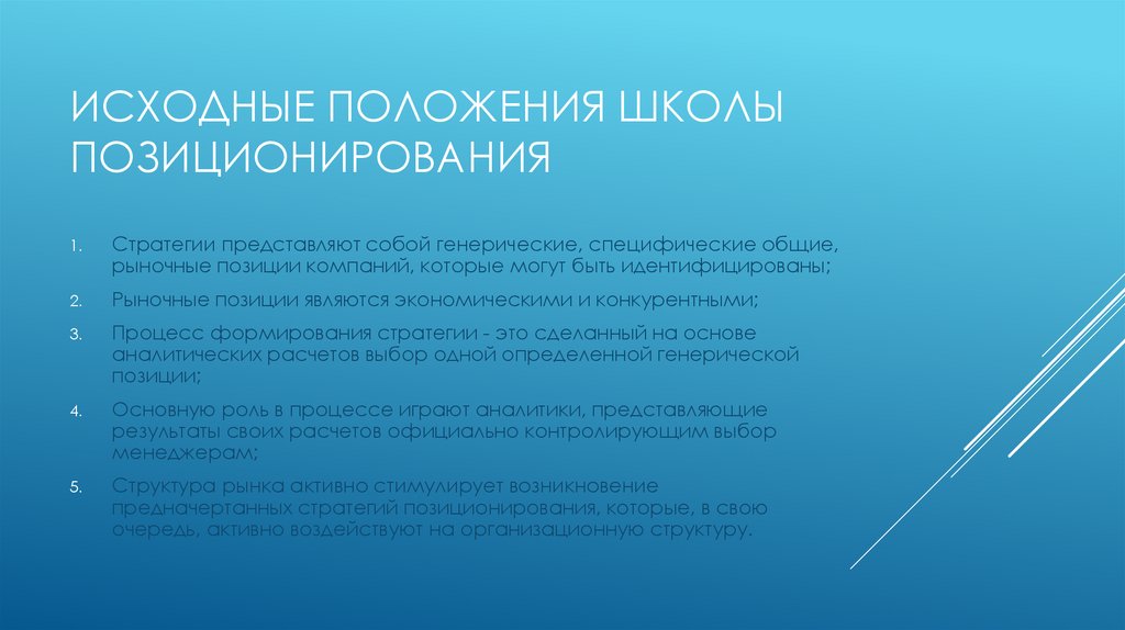 ИСХОДНЫЕ ПОЛОЖЕНИЯ ШКОЛЫПОЗИЦИОНИРОВАНИЯ