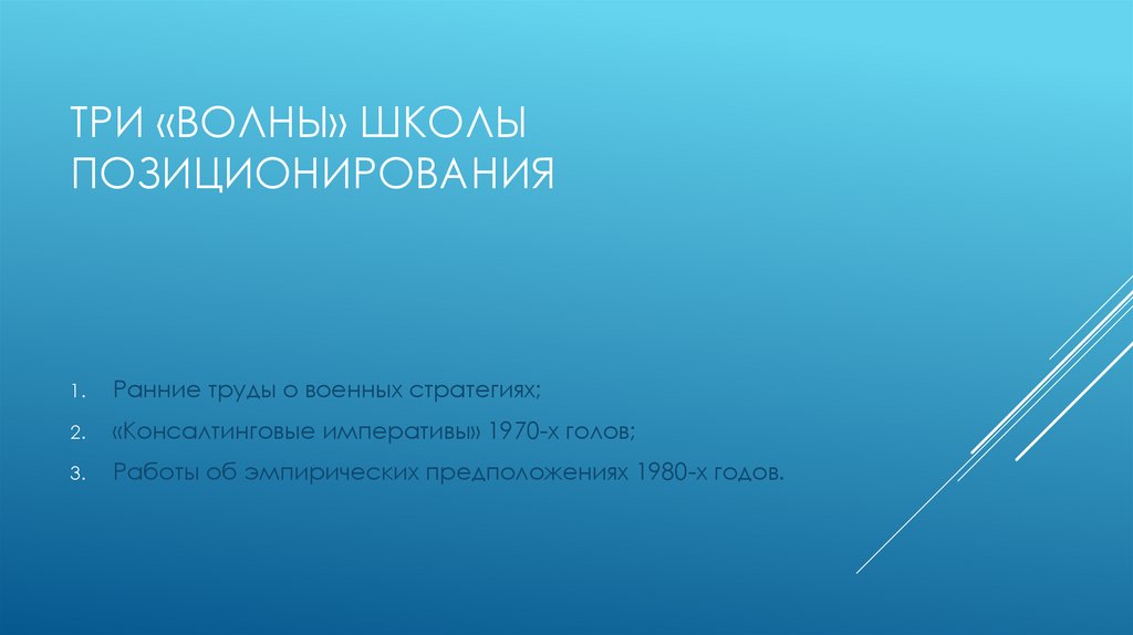 ТРИ «ВОЛНЫ» ШКОЛЫПОЗИЦИОНИРОВАНИЯ