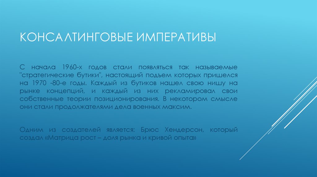 КОНСАЛТИНГОВЫЕ ИМПЕРАТИВЫС начала 1960-х годов стали появляться так называемые